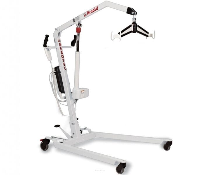 Arnold 125 zapewnia przewidywalny transfer i wygodną pielęgnację przy łóżku, wózku oraz w łazience. Elektryczne ramię i pilot zmniejszają wysiłek opiekuna, a pacjent ma stabilne wsparcie. Niska podstawa ułatwia podjazd pod łóżko i wannę.