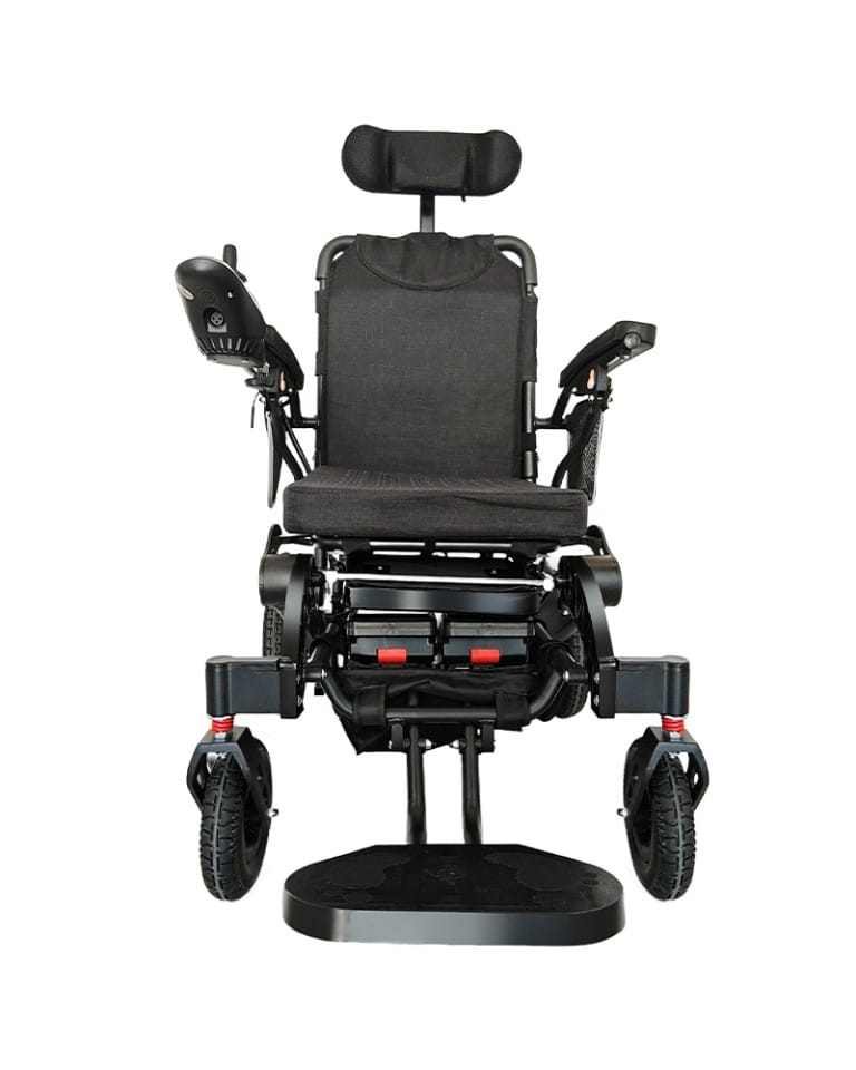 Dla opiekuna: intuicyjne sterowanie, pilot do podprowadzenia wózka i konstrukcja ok. 35 kg ułatwiają codzienną obsługę i transport.
